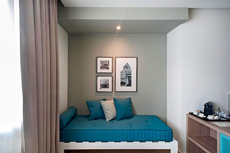 Spacious rooms featuring an large wardrobe, fully equipped kitchenette, lounge area, luxury private bathroom, and air conditioning.